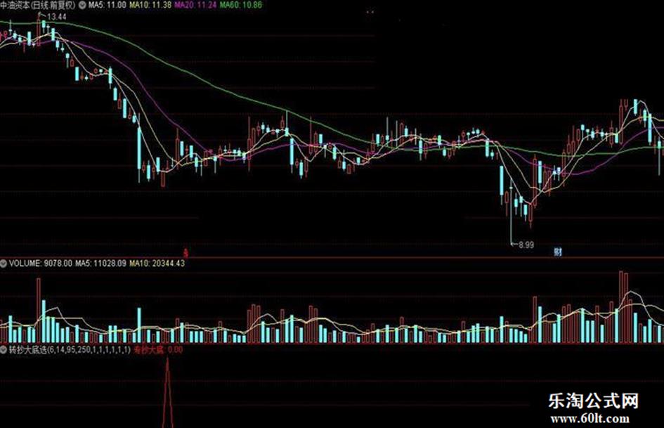 专抄大底: IF(VARA+VARB<7 AND CROSS(VAR8,VAR9) AND VAR9<-18 AND VAR9<VARB,60,0),COLOR0000FF;