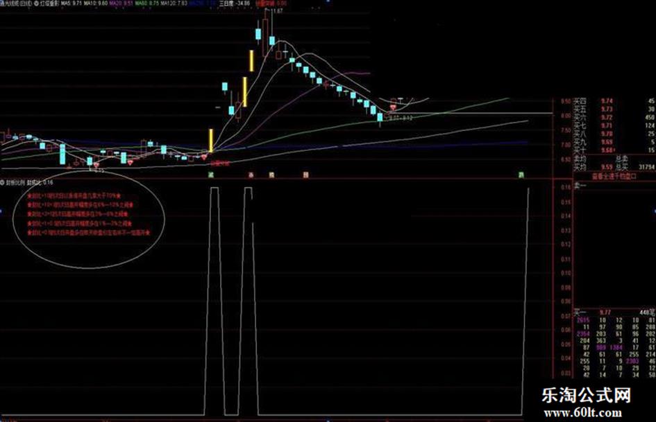 封成比:(DYNAINFO(58)/DYNAINFO(8))*((C/REF(C,1)>1.093 AND C=H));
