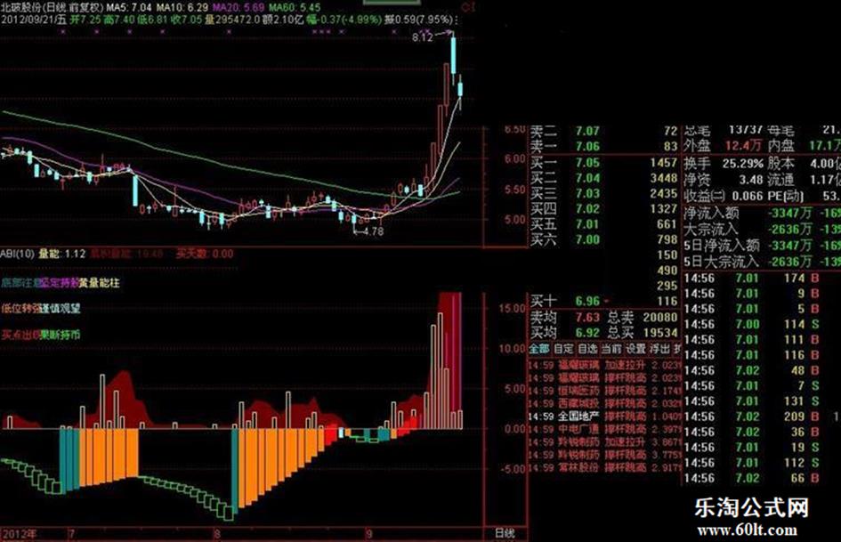 主动卖盘:=IF(CLOSE>OPEN,A1*((HIGH-CLOSE)+(OPEN-LOW)),IF(CLOSE<OPEN,A1*(HIGH-LOW),VOL/2)),COLORGREEN;