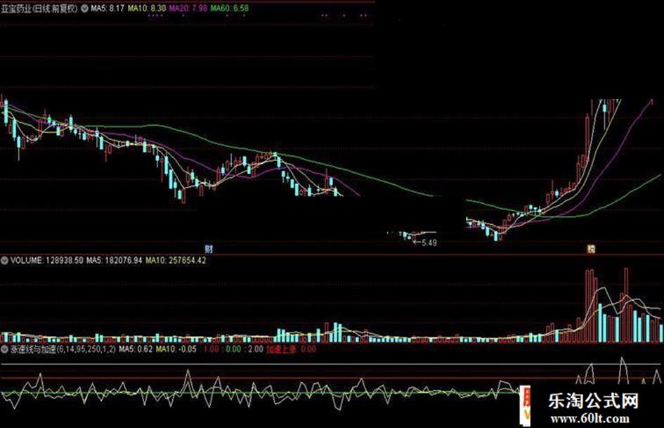 加速上涨:CROSS(MA5,1) AND ( CROSS(MA10,1) OR MA10>=0.98),COLORRED,NODRAW;