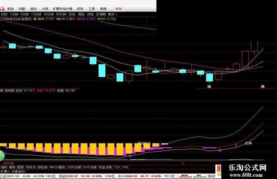 绝佳机会:CROSS(短线,长线)AND 长线<18 AND 长线>REF(长线,1)OR CROSS(长线,5),COLORYELLOW;