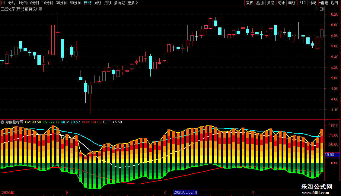 CV:EMA(100-GV,3)*(-1),LINETHICK2,COLORGREEN;