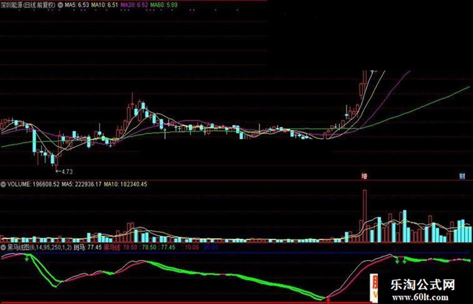 IF(黑马线<REF(黑马线,1),黑马线,DRAWNULL),COLORGREEN,LINETHICK3;