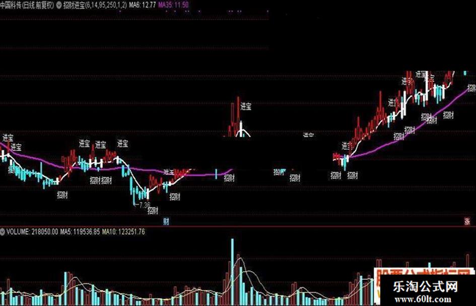SEL:=CROSS(卖线,买线);DRAWTEXT(BUY1,LOW*0.95,'招财'),COLORWHITE,LINETHICK5;
