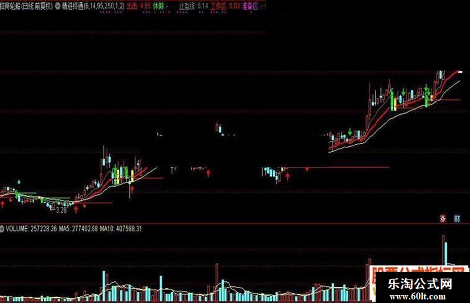 工作区:IF(C>=工作线 AND EMA(C,14)>=EMA(C,25),工作线,DRAWNULL), COLORRED,LINETHICK2;