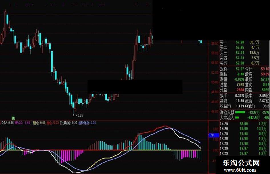 白线破仓:IF(DIF<DEA,DIF,DEA),COLORWHITE,LINETHICK2;