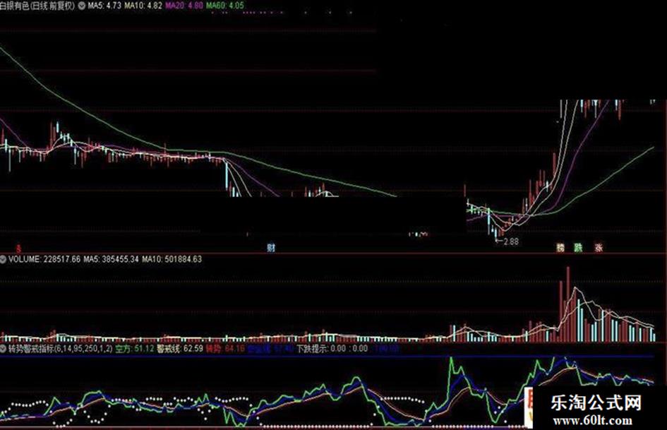 下跌提示: IF(VAR1<0,VAR2,0),POINTDOT,LINETHICK4;