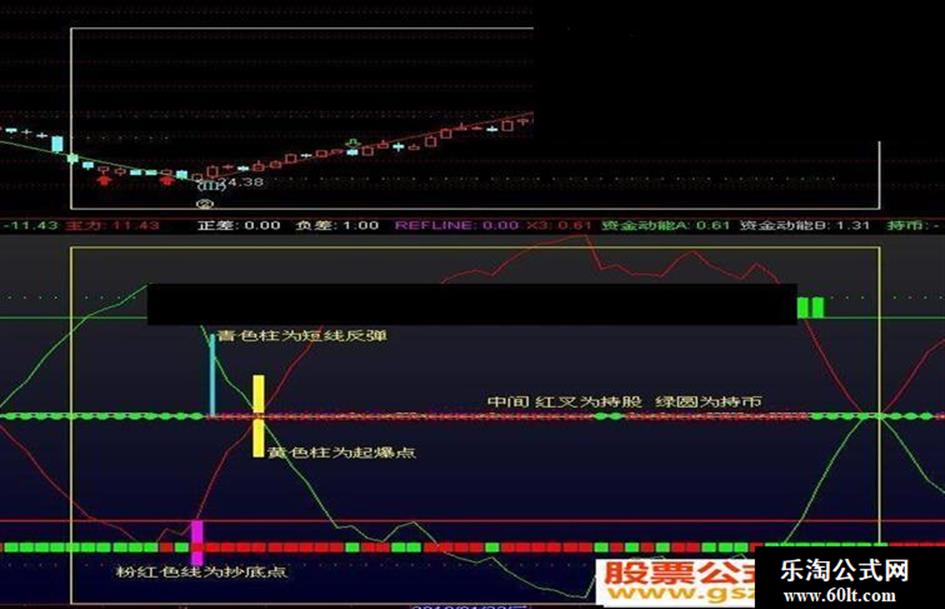 短线反弹:IF(CROSS(个股,9),30,0),STICK,LINETHICK3,COLORFF00FF;