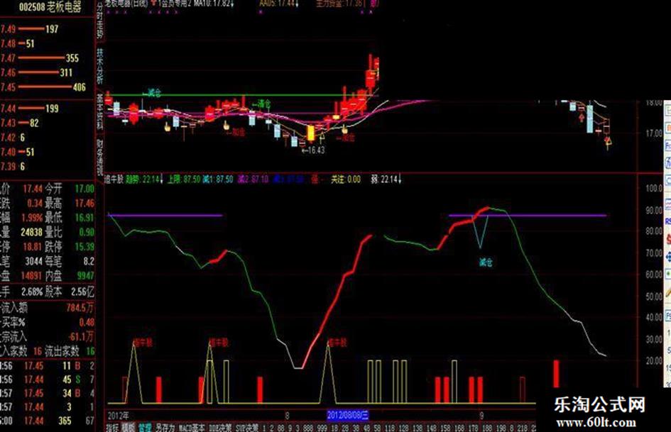 减2:IF(FILTER(CROSS(趋势,92),10),67,87.10),COLORMAGENTA;
