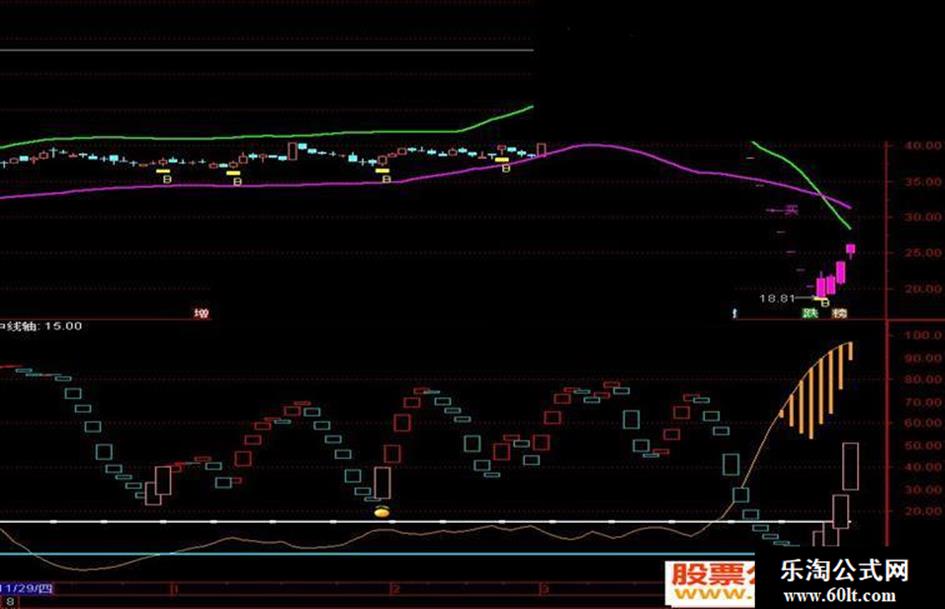 XXX:STICKLINE(VVAR4>MA1 AND REF(VVAR4,1)<30,VVAR4+5,MA1-4,6,1),COLORLIRED;