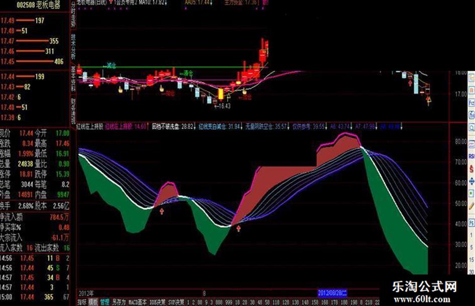 输出流出亿:如果收阳线,返回0-VAR1*((最高价-收盘价)+(开盘价-最低价)),否则返回如果收阴线,返回0-VAR1*(最高价-最低价),否则返回0-成交额(元)/2/100000000,COLOR00FF00,NODRAW