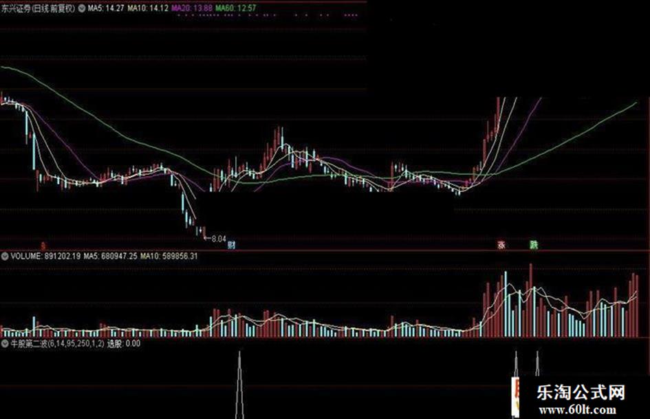 趋势线:=SMA(MAX(CLOSE-LC,0),14,1)/SMA(ABS(CLOSE-LC),14,1)*100,COLORGRAY;