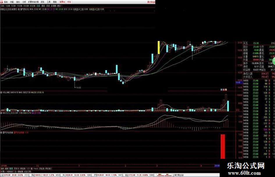 TS3:=REF(C,BARSLAST(HOD(MACD.MACD,TS2)=1)),NODRAW; TS4:=REF(TS3/LLV(MIN(C,O),BARSLAST(HOD(MACD.MACD,TS2)=1)),1); TS5:=REF(MACD.MACD,3)<0 AND EVERY(MACD.DEA>0,BARSLAST(HOD(MACD.MACD,TS2)=1)); 霸气平台突破:BARSLAST(CROSS(MACD.DEA,MACD.DIF))>=13 AND EVERY(MACD.MACD>REF(MACD.MACD,1),2) AND TS4 AND TS5 AND HOD(MAX(C,O),BARSLAST(HOD(MACD.MACD,TS2)=1))=1 AND H>=ZTPRICE(REF(CLOSE,1),0.1)*0.95,COLORRED,NODRAW; STICKLINE(霸气平台突破,0,1,3,0),COLORRED;