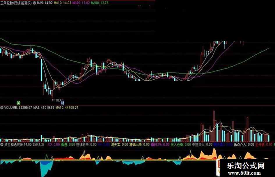 准确出击:CROSS(CLOSE,REF(EMA(DMA((((HIGH+LOW)+(CLOSE*2))/4.15),0.9),3),1))AND JTB<55 AND DI;