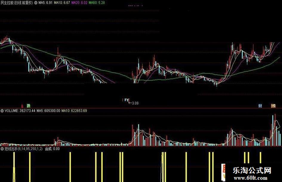 短线买点:=IF(SS>13,MA(SS,2),SS)/6;
