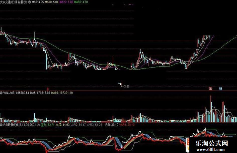 VAR4:IF(RSI<VAR2,RSI,VAR2),COLORRED,LINETHICK3;