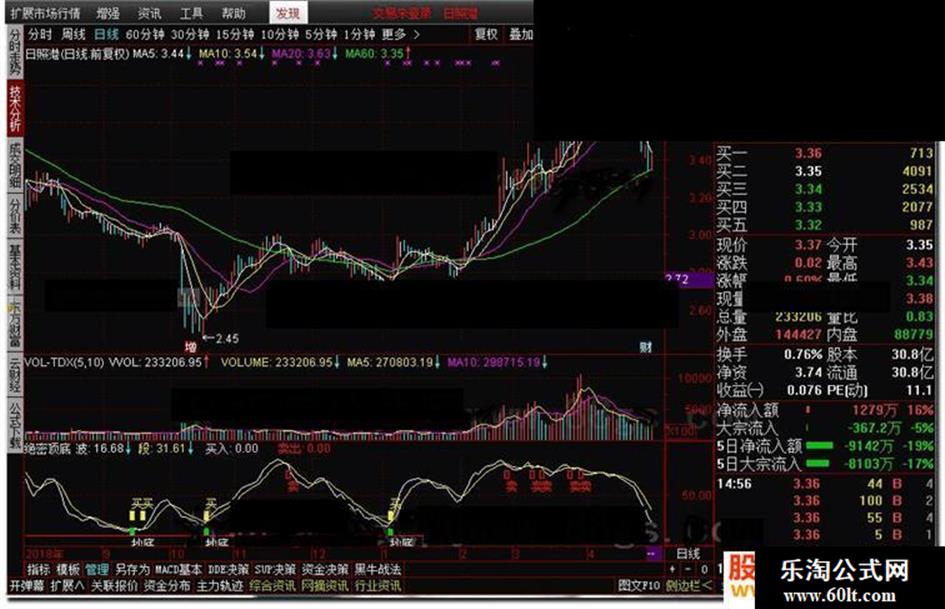 经测试绝密顶底综合胜率 47.47% ,虽高于抄底买入指标综合胜率 47.43%,但综合收益率 2.36%,低于抄底买入综合收益率 5.02% .是目前自编指标中胜率也比较高的一个了。