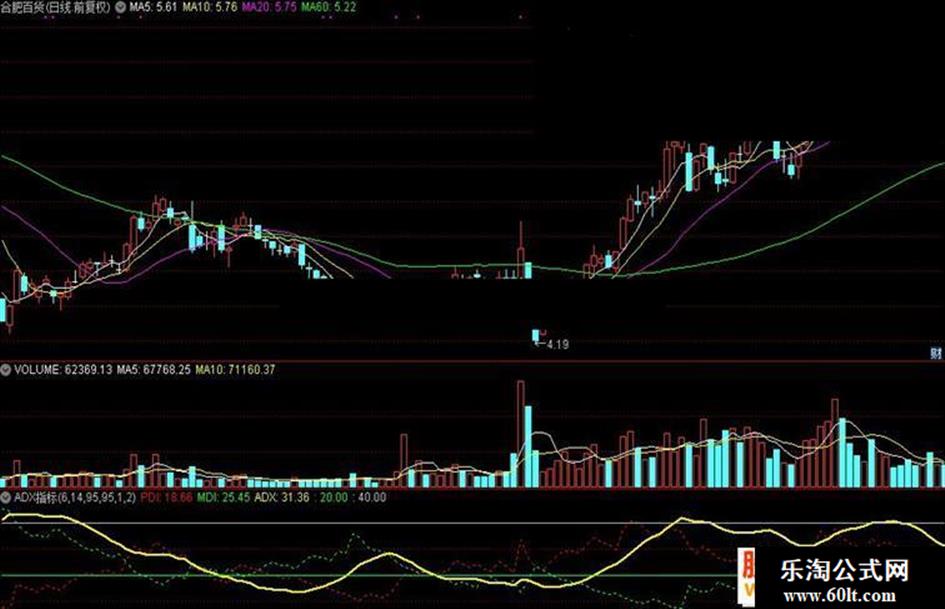 ADX:SMA(ABS(MDI-PDI)/(MDI+PDI)*100,N,1),COLORYELLOW,LINETHICK2;
