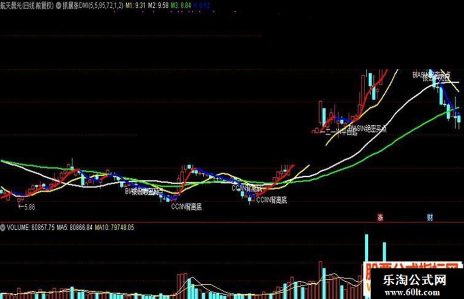 DRAWTEXT(LAST(MA(C,5)<MA(C,10),5,0) AND "CCI.CCI">REF("CCI.CCI",1) AND CROSS("CCI.CCI",-100),L*0.975,'CCI\N背离底');