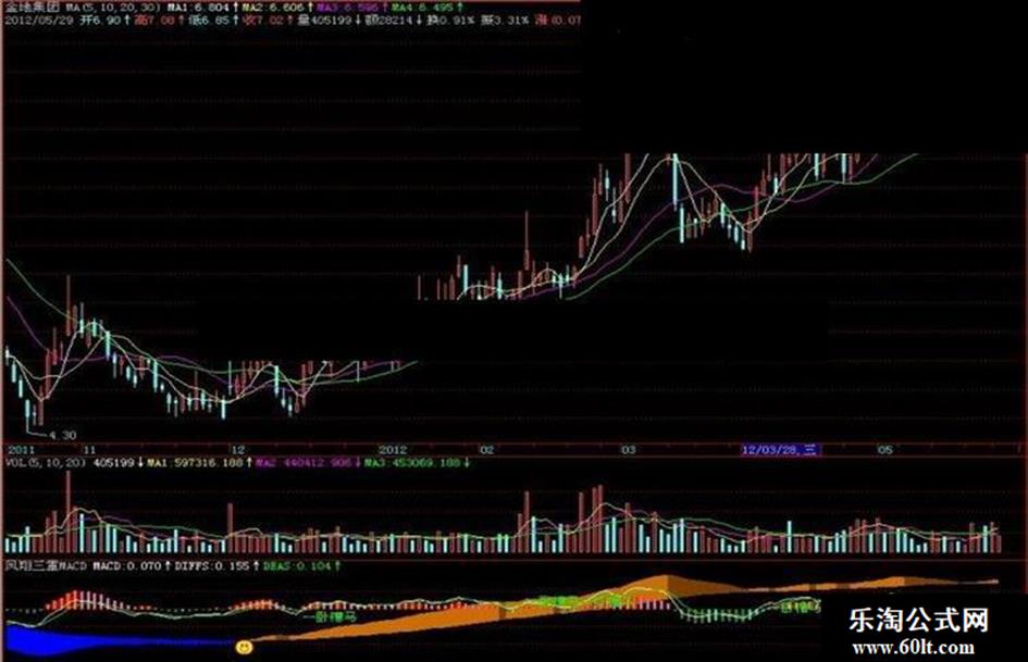 stickline(DIFF<DEA and macd>ref(macd,1) ,macd,0,5,0),Color7BA600;