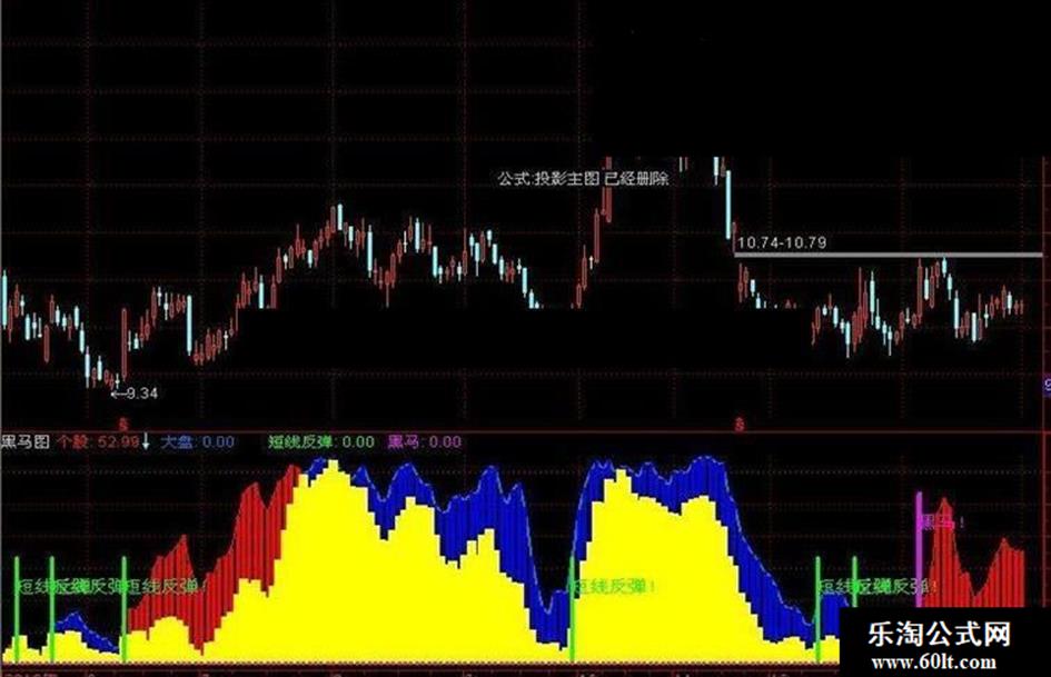 短线反弹:IF(CROSS(个股,9),50,0),STICK,LINETHICK3,COLOR00FF00;