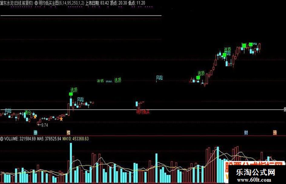 DRAWTEXT(CROSS(天线,多方趋势),H*1.04,'逃顶'),COLOR00FF00;