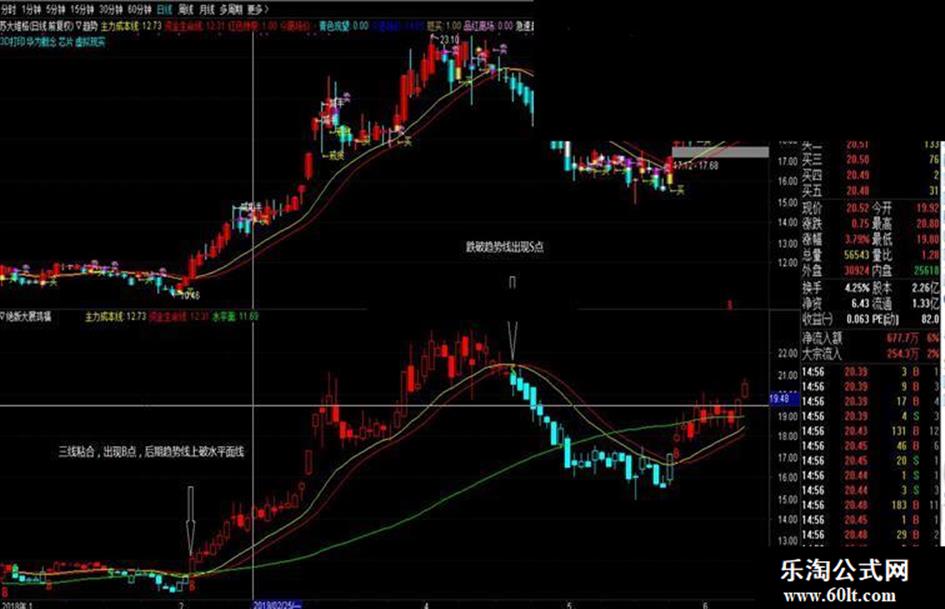 稳健的可以等到主力成本线和资金生命线在水平面线上边出现B点时买入;