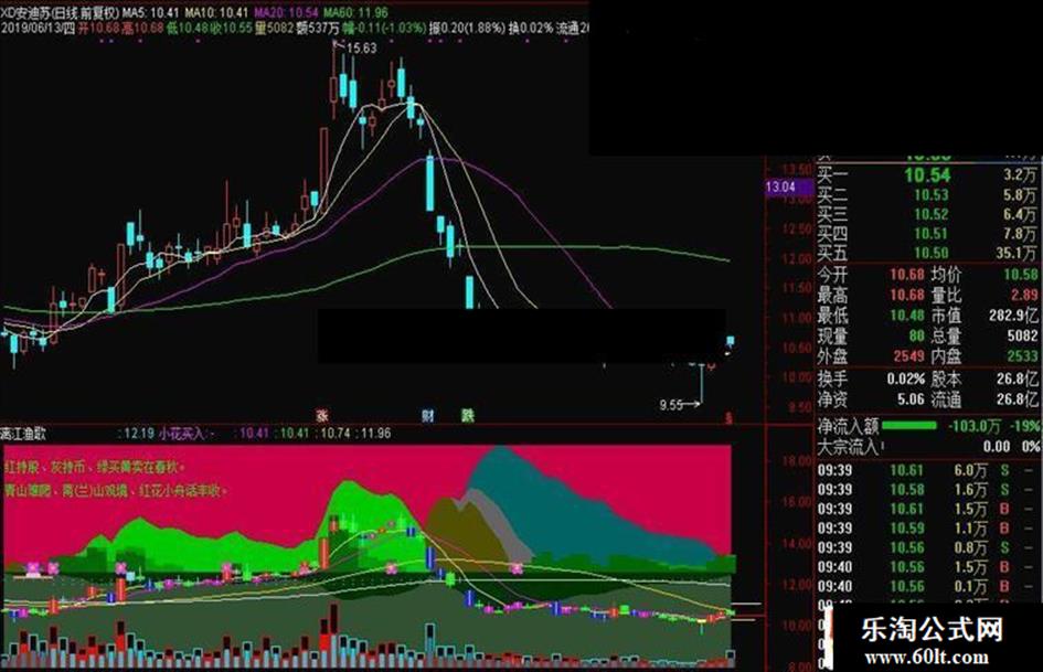 卖盘2:=IF(ISLASTBAR AND C>300,(V6+V7)*TT,(V6+V7));