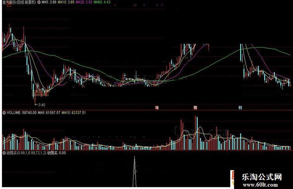 买:=IF(CROSS(M18,M2),5,0* 10000),COLORFF00FF,LINETHICK2;