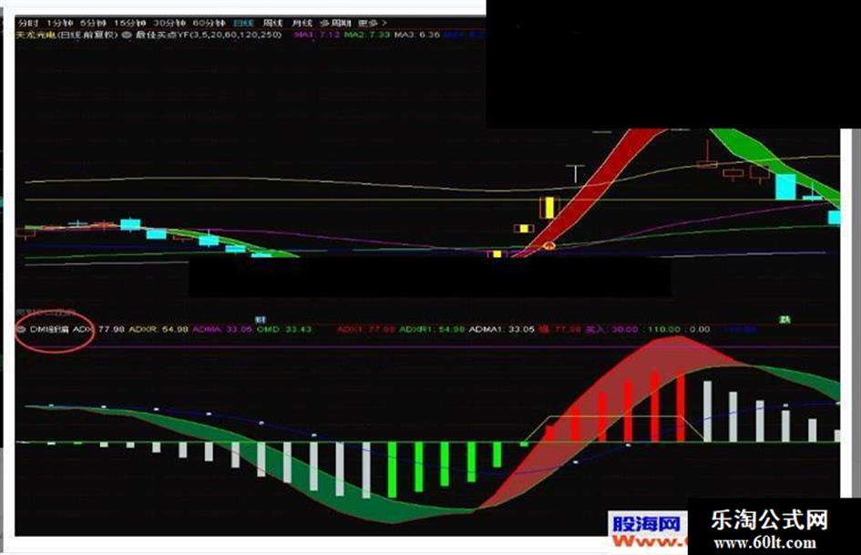 强:IF(ADX1>=ADXR1,ADX1,DRAWNULL),COLORRED,LINETHICK3;