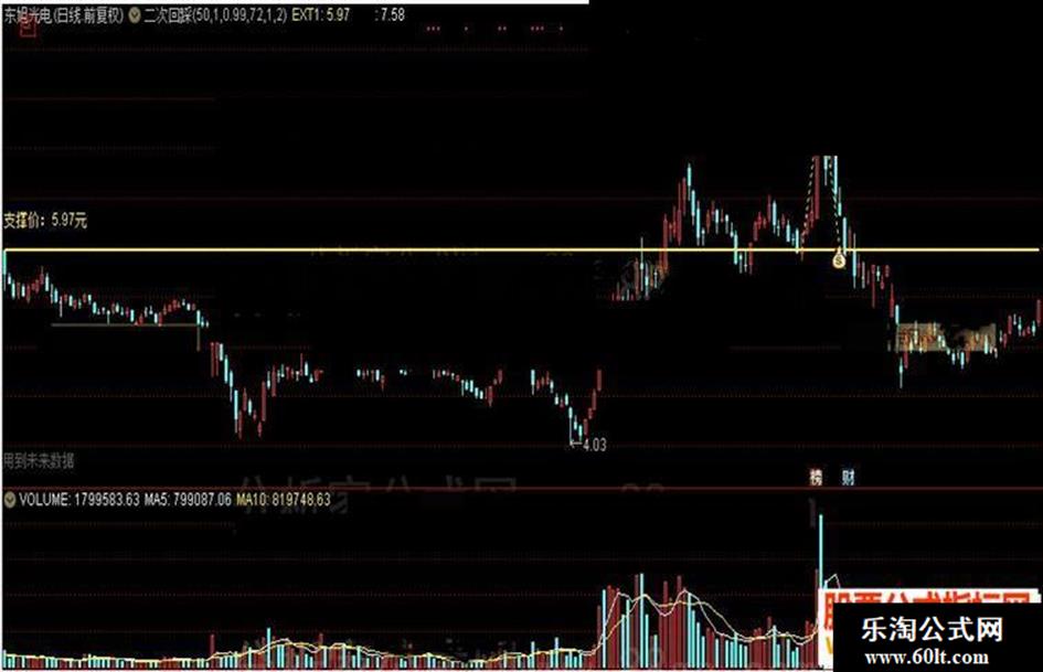 DRAWTEXT(TT=0,REF(H,TT)*1.05,VARCAT(VARCAT("支撑价:",VAR2STR(REF(H,TT),2)),"元"))COLORYELLOW;