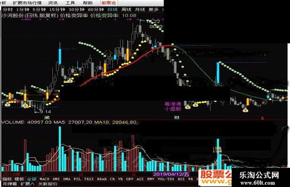 IF(CLOSE>=价格变异率,价格变异率,DRAWNULL),CIRCLEDOT,COLORYELLOW,LINETHICK2;