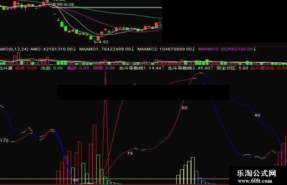 北斗异动:= IF(北斗导航线2<=5,50,0),COLORGREEN;