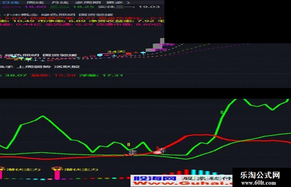 用法当趋势线上穿浮筹或者散筹其中之一,散筹线下行时,提示走牛,开启主升浪;当红色趋势线同时上穿浮筹和散筹时,一般当天涨停,提示主升,后续连续拉升甚至拉板,可能一举抓到妖股;