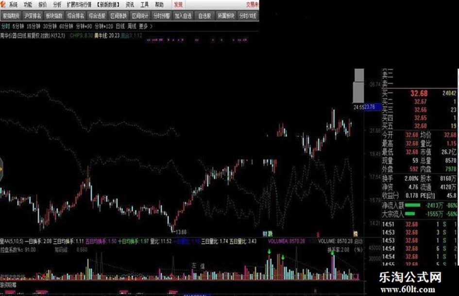 离合、黄牛线下穿K线,结合K线形态,成交量判定牛股。上穿K线立即卖出。