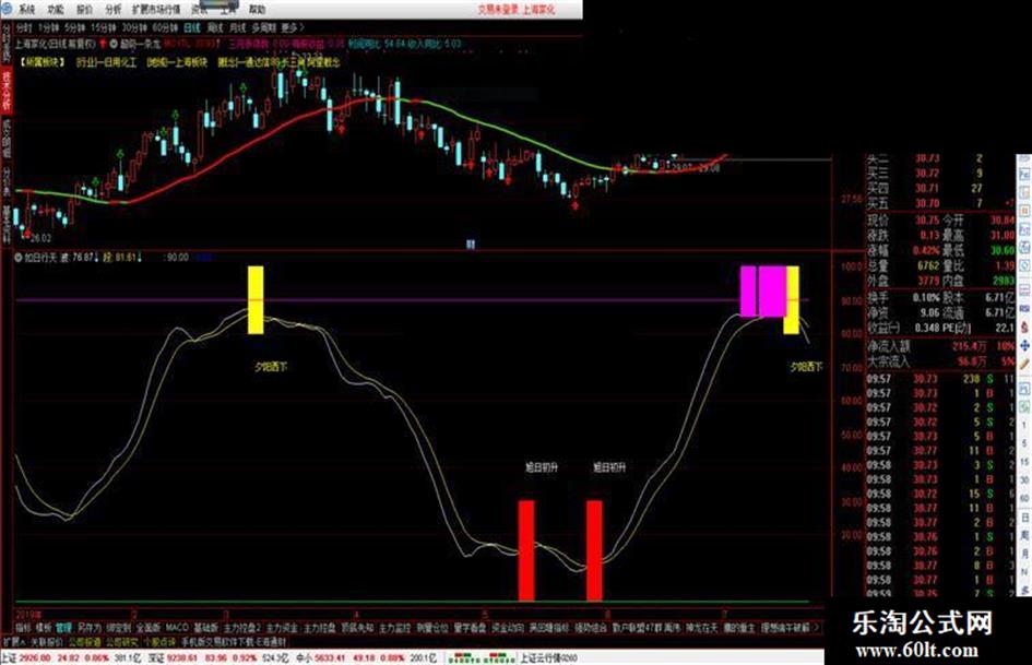 1、如图所示,该指标为副图指标和选股指标,指标无未来,使用比较简单,就一个买点和一个卖点信号提示。 2、当指标出现红色柱状图以及文字“旭日初升”信号提示时,此时说明我们的买点到来,是我们介入的时机。 3、当指标出现黄色柱状图或者说紫红色柱状图时,此时是我们的卖点信号提示,此时是我们出货的时机。 4、我们都知道,指标不是万能的,所以大家在运用该指标操盘时,能配合趋势类指标效果会更好。