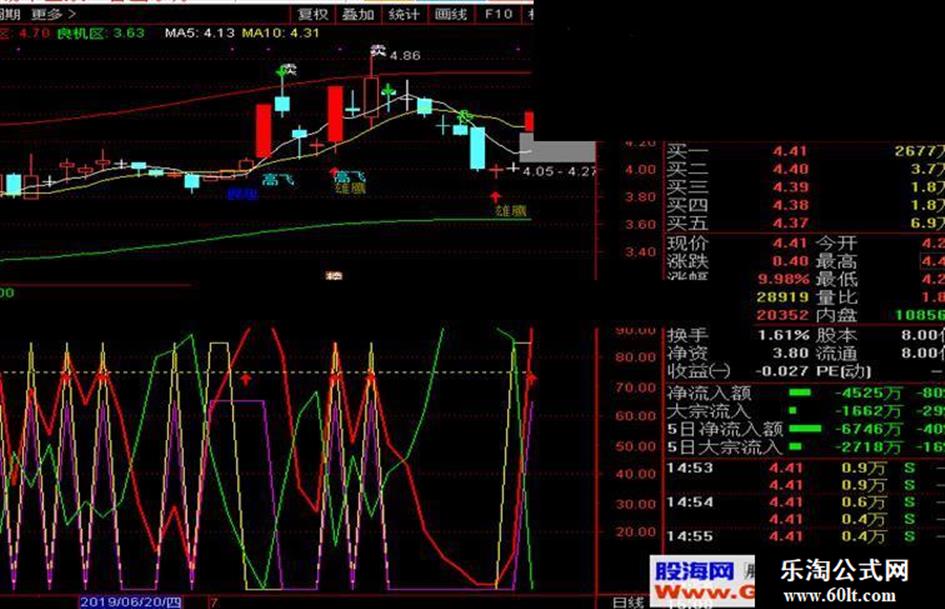 RSI1:SMA(MAX(CLOSE-LC,0),2,1)/SMA(ABS(CLOSE-LC),2,1)*100,COLORRED,LINETHICK2;