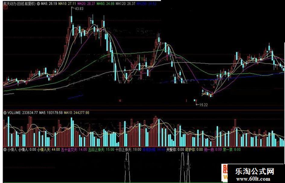 苛护你:IF(BETWEEN(BARSLAST(关爱你)+1,1,4) AND 跳空低开 AND (H-L)/ABS(C-O)>4,2,0);