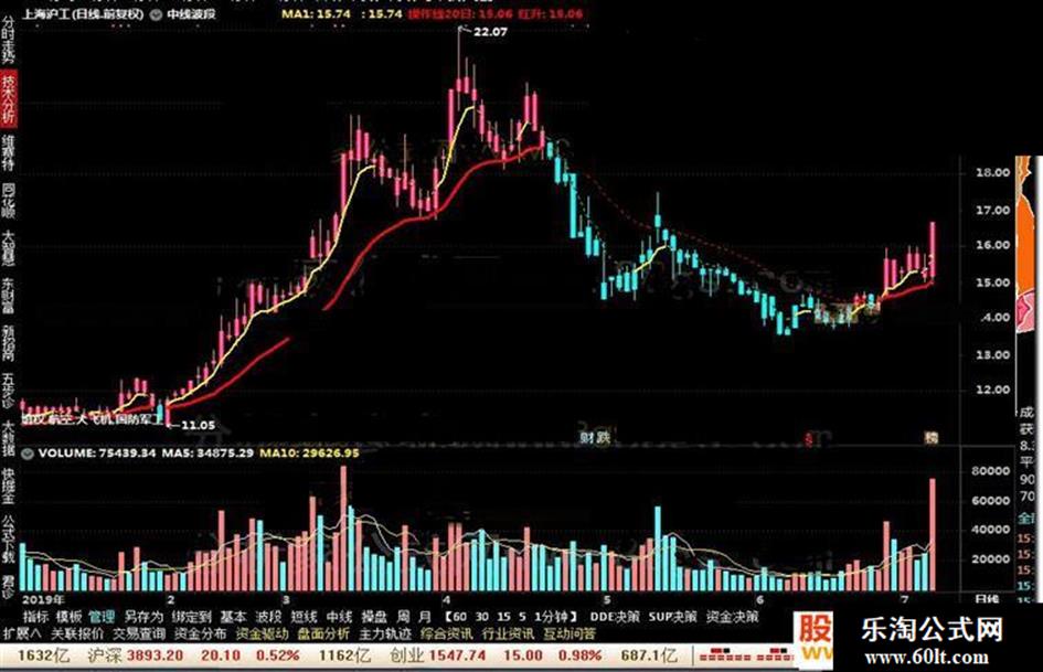 红升:IF(操作线20日>REF(操作线20日,1),操作线20日,DRAWNULL),COLOR0000FF,LINETHICK3;