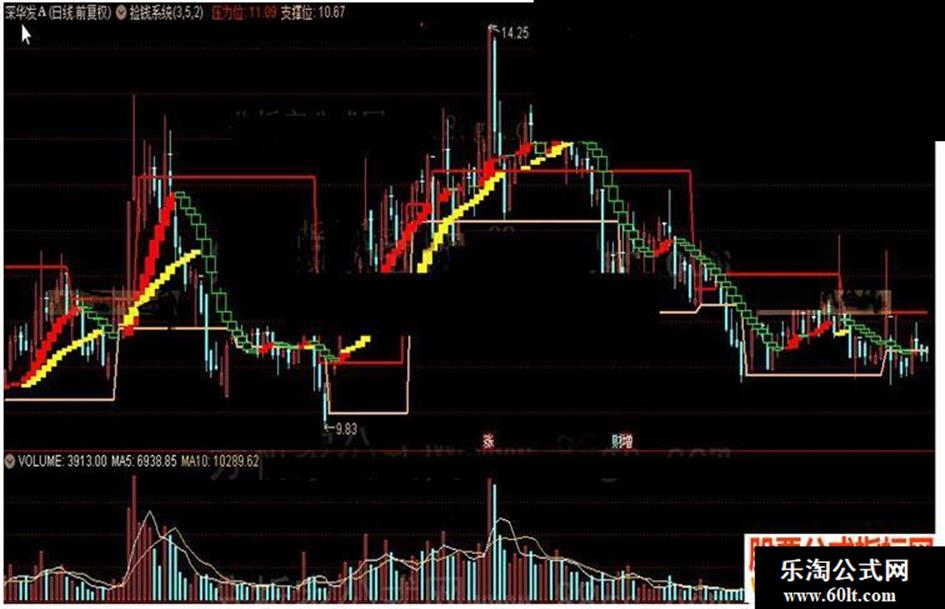 压力位:IF(CROSS(J24,J),H,REF(H,BARSLAST(CROSS(J24,J)))),COLORRED,LINETHICK2;
