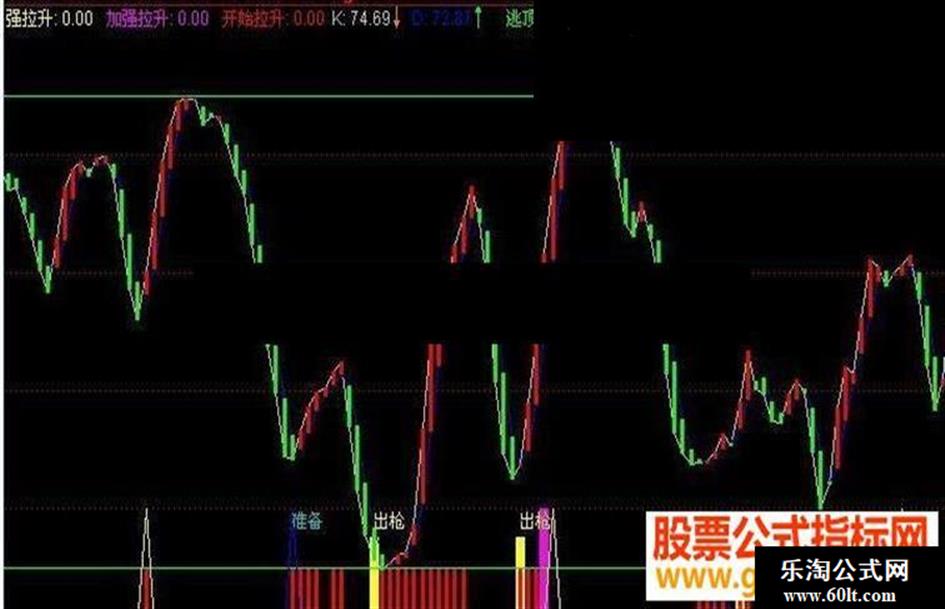 开始拉升:STICKLINE(地>天 AND 地<0,10,0,1,0)=1,COLORRED;