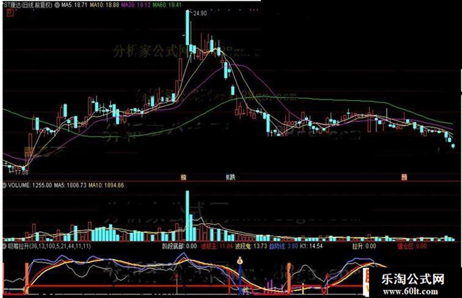 阶段底部:IF(CROSS(吸筹指标,-24),1,0), COLORFFFFFF;