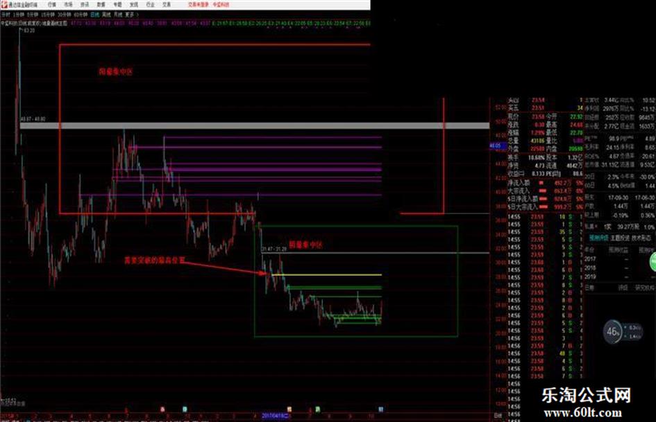 第一套 日线级别地量看盘主图 指标构思:这套日线级别的地量画线是将N(可自行调节)周期内10根最大阳量和十根最小阴量连线,方便您参考N周期内放量和缩量集中在哪个价位。 枚红色水平画线表示阳量 绿色水平画线表示阴量,黄色加粗水平画线表示阴量最高画线。根据画线可以参考N周期阳量 阴量集中在哪个价位,参考买进 卖出 阳量取N周期内最大排名前十,阴量取N周期内最小(地量)排名前十画线