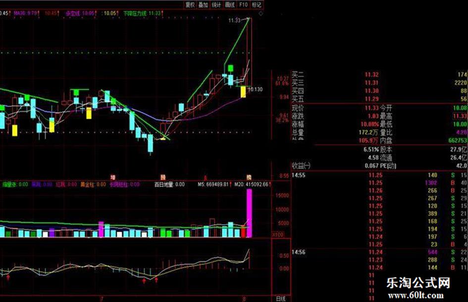 用法:黄托底买进,绿压顶卖出,简单实用,一目了然。来自老师的源码