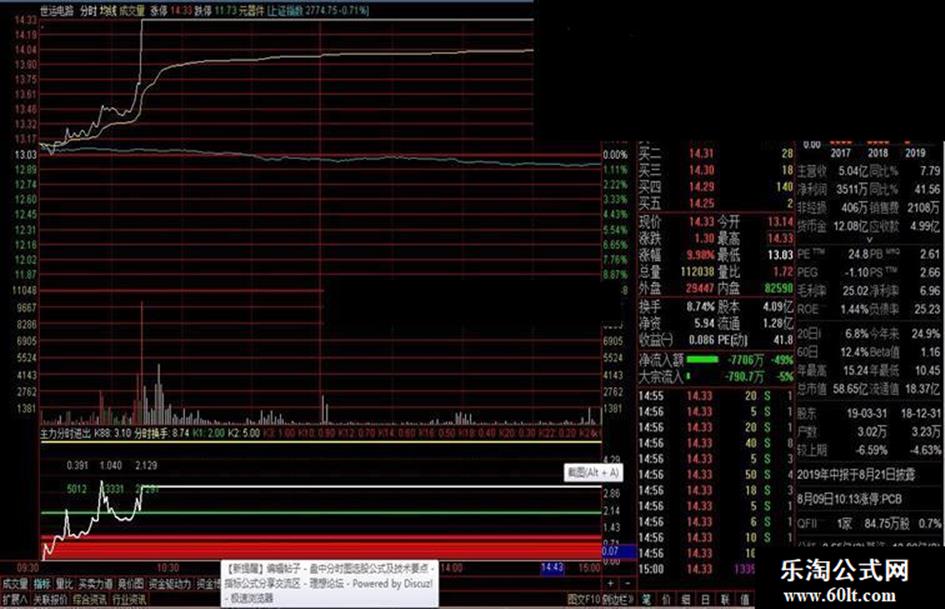 我现在重点对分时图股价一直站于均线之上的研究成果做一介绍。主力做多,实力雄厚,股价是一路走高,不惧大盘的调整与起落,从根本上体现了该股基本面向好,散发出年青人的朝气。这类股是我们重点关注的。同时结合K线的走势,日线、小时线的 J值处在60--85之间的,可以大胆介入。