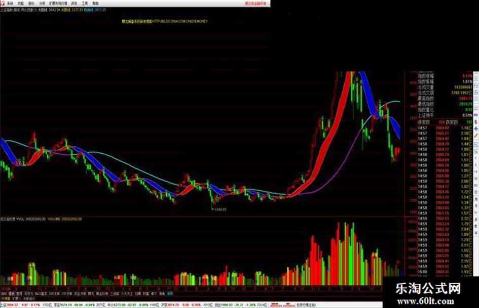 3.乾坤牛熊判定——乾坤线粉色牛市、青色熊市。