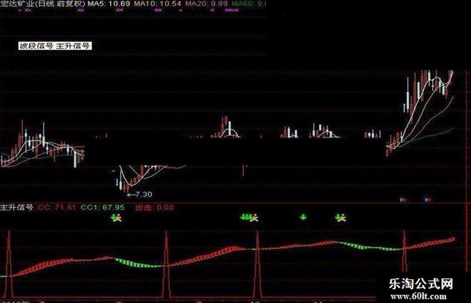 出击:IF((CROSS(CC,CC1) AND (CC1 < 顶) ),80,0),COLORRED;