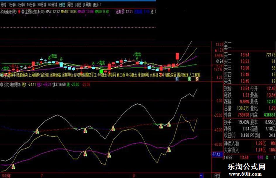 系统自带公式的应用延伸,增加了三色球买入提示。其它各种颜色的线的使用含义请自己总结并应用。注意:线1、线2、线3成组向上时应用效果比较好,分享的目的:指标不是万能的,思路很重要。