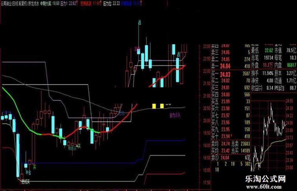 DRAWTEXT(((CROSS(MA20,压力位) AND (LOW <= MA20)) AND ((MA20 - REF(MA20,1)) > 0.02)),(LOW - 0.03),'●绝佳买点'),COLORAFA0AF;