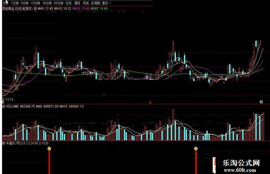 牛1:=IF(CROSS(0.9,1/VOL*1000>0.01 AND "KDJ.J"<0),1,0),COLORYELLOW,LINETHICK2;